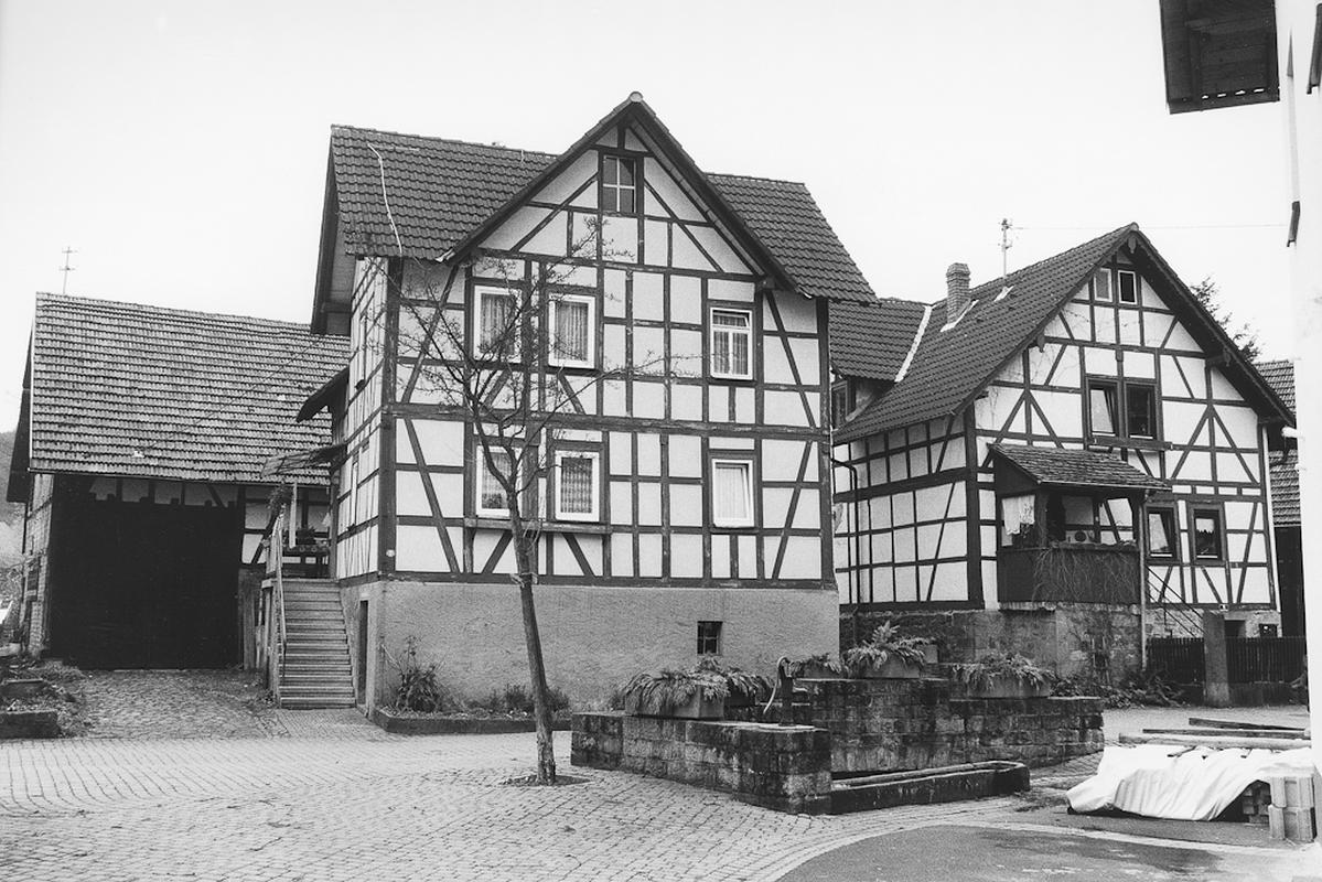 Die unregelmäßige Anordnung der Fachwerkhöfe lässt überall Raum für Gärten oder zumindest den Straßenraum prägende Bäume. Die ältesten Höfe wurden eingeschossig auf hohen Keller- und Stallgeschossen im typischen Stil des vorderen Spessarts errichtet, die Häuser um 1900 wurden den gestiegenen Ansprüchen entsprechend zweigeschossig gebaut. Sowohl im alten Ortskern als auch in der Erweiterung aus dem 19. Jahrhundert fallen die Scheunen mit weit vorkragenden Dachkonstruktionen auf, die zur Lagerung von Heu dienen und gleichzeitig den Hof überdachen. Die älteren Siedlungsbereiche, die noch weitgehend ungestört sind, werden aus sozial- und entwicklungsgeschichtlichen Gründen als Gesamtanlage ausgewiesen. Dazu gehören folgende Grundstücke: