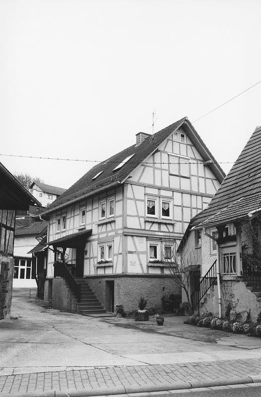 Zweigeschossiger Fachwerkbau giebelständig zur Straße unter Satteldach im hinteren Hofbereich. Zweigeschossiger Bau aus einfachem Sichtfachwerk auf hohem Kellergeschoss datiert 1894, einhüftige Sandsteintreppe als Erschliessung zum Erdgeschoss.