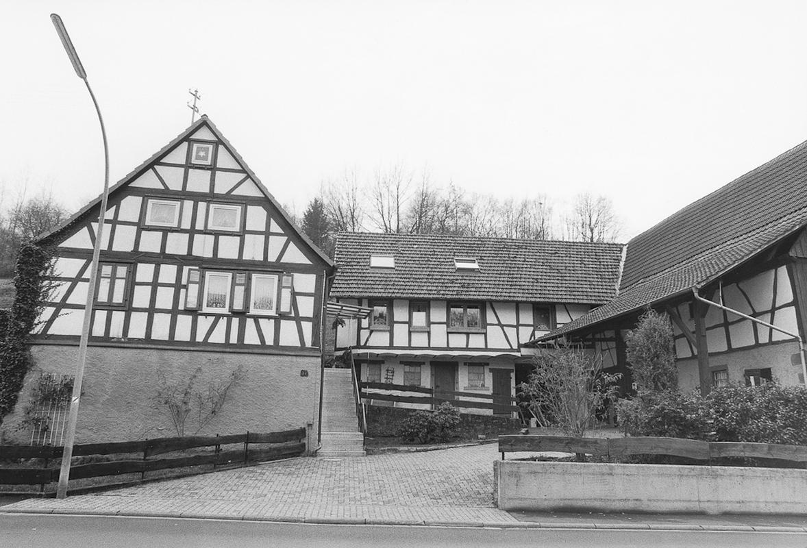 Gut erhaltene, geschlossene Dreiseithofanlage aus der zweiten Hälfte des 19. Jahrhunderts, bestehend aus giebelständigem, zweigeschossigem Wohnhaus in Mischbauweise auf hohem, massivem Sockelgeschoss, giebelseitig Fachwerk, traufseitig Ziegelmauerwerk, Satteldach mit Aufschiebling. Ebenfalls giebelständige Stallscheune mit massivem Erdgeschoss, Fachwerkdrempel und weit abgeschlepptem Vordach. Dazwischen ein zweigeschossiger Verbindungsbau mit Stall im Erdgeschoss und Wohnobergeschoss, der zwar in jüngerer Zeit umgebaut wurde, aber zum geschlossenen Erscheinungsbild des Hofes beiträgt.