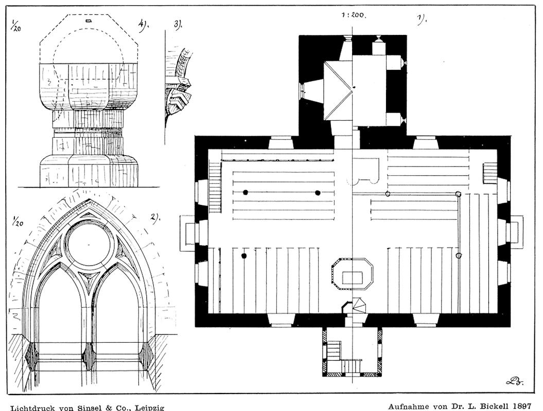 Im Erdgeschoss des Chorturmes Kreuzrippengewölbe, auf dem Schlussstein eine darstellung Christi, an der östlichen Konsole das Wappen der Grafen von Hanau An den wänden 1984 freigelegte Fragmente gotischer Wandmalereien in Kalk-Secco-Technik wohl aus dem 15. Jahrhundert mit Darstellung des letzten Gerichtes.