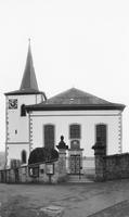 Der Kirchhof wird von einer hohen Sandsteinmauer umgeben und über Eisengittertore zwischen Torpfosten mit haubenförmigem Aufsatz erschlossen.