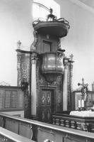 Die für eine protestantische Kirche ungewöhnlich reiche bauzeitliche Ausstattung mit Gestühl, Wandverkleidung und Orgelprospekt in barocken Formen stammt vermutlich aus einer Würzburger Werkstatt. An der emporenfreien Westwand geschwungene Kanzelwand mit Korbkanzel, Schalldeckel, gestützt durch zwei Säulen und integriertem Zugang zur Sakristei. Die Oberflächen mit Intarsien aus Eichen- und Nussbaumholz, die aufgesetzten Felder und Beschläge sind vergoldet, die beiden Säulen und profilierten Rahmungen farbig gefasst. An die kanzelwand schließen die vergitterten Standessitze für die Gemeindevertreter, die Beamten und die Pfarrersfamilie an. Vor der Kanzelwand in Raummitte steht der schlichte Altartisch mit einem Kruzifix, umgeben von einem Balustergeländer in dem sogen. "Paradies“. Auf der Ostempore befindet sich der reich dekorierte barocke Orgelprospekt, der bei einem Umbau der Orgel 1904 durch die Fa. Steinmeyer erhalten blieb.