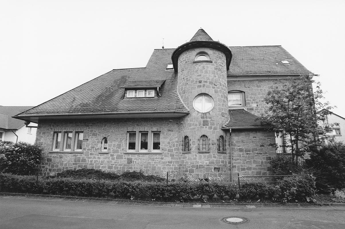 Ein- bis zweigeschossiger repräsentativer Massivbau aus dem ersten Jahrzehnt des 20. Jahrhunderts mit Windfang und Treppenturm in romanisch anmutenden Formen aus Sandsteinquadern. Fenstergewände in Werkstein.