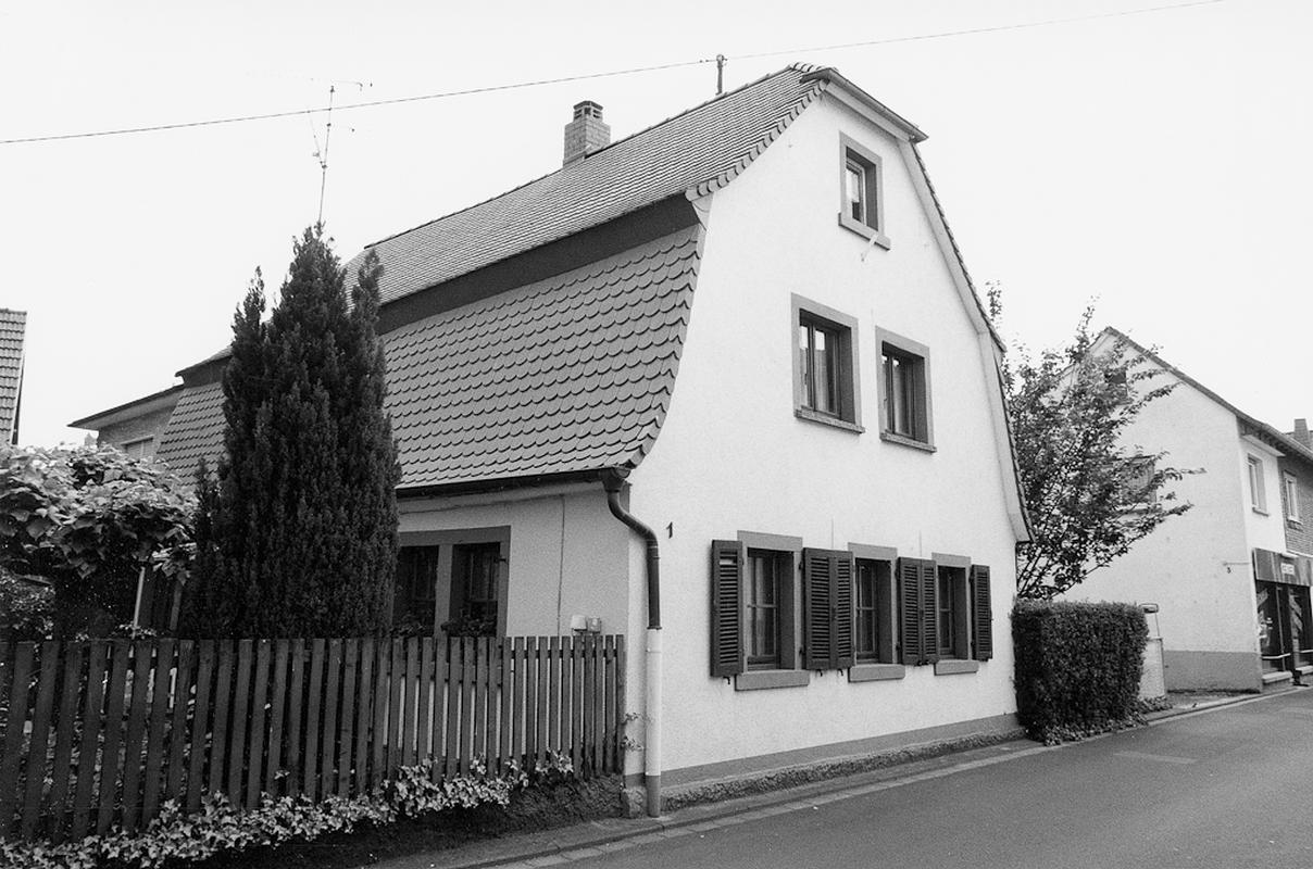 Dreiseitige Hofanlage mit giebelständigem, eingeschossigem Wohnhaus aus dem 18. Jahrhundert. Putzbau auf niedrigem Sandsteinsockel mit hohem, kurz abgewalmten deutschem Mansarddach. Tür- und Fenstergewände aus Sandstein, Erschließung traufseitig.