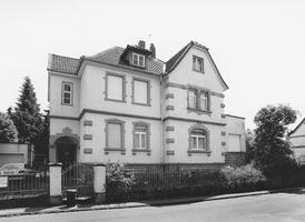 Zweigeschossige historistische Villa in bewegter Kubatur mit reich gegliederter Dachlandschaft, inschriftlich datiert auf 1904. Putzbau auf Kellersockel aus gepickten Sandsteinquadern mit Randschlag und rustizierten Eckquadern. Fenstergewände in Sandstein, an der Nordseite Treppenhausvorbau mit Hauserschliessung über zweiseitig offenen Windfang auf Eckpfeiler. Im Obergeschoss dreifach gekuppeltes Fenster, im Giebel halbes Okulusfenster. An der Südwestecke vorstoßender giebelständiger Eckrisalit mit großem Korbbogenfenster im Erdgeschoss und reich dekoriertem Zwillingsfenster im Obergeschoss. Horizontalgliederung durch Kaffgesims. Schützenswert ist auch der bauzeitliche schmiedeeiserne Zaun zwischen Sandsteinpfosten mit vierseitigem Giebelabschluss.