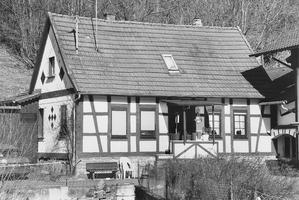 Kleines, traufständiges Wohnhaus jenseits des Gettenbachs in schlichtem Fachwerk auf massivem Kellersockel mit tiefem Kellerhals, Satteldach mit Aufschiebling. Achsensymmetrische, fünfachsige Fassade mit zentraler Erschliessung über einläufige Außentreppe und Haustür mit Oberlicht. Rest einer Hofanlage aus dem Anfang des 19. Jahrhunderts.