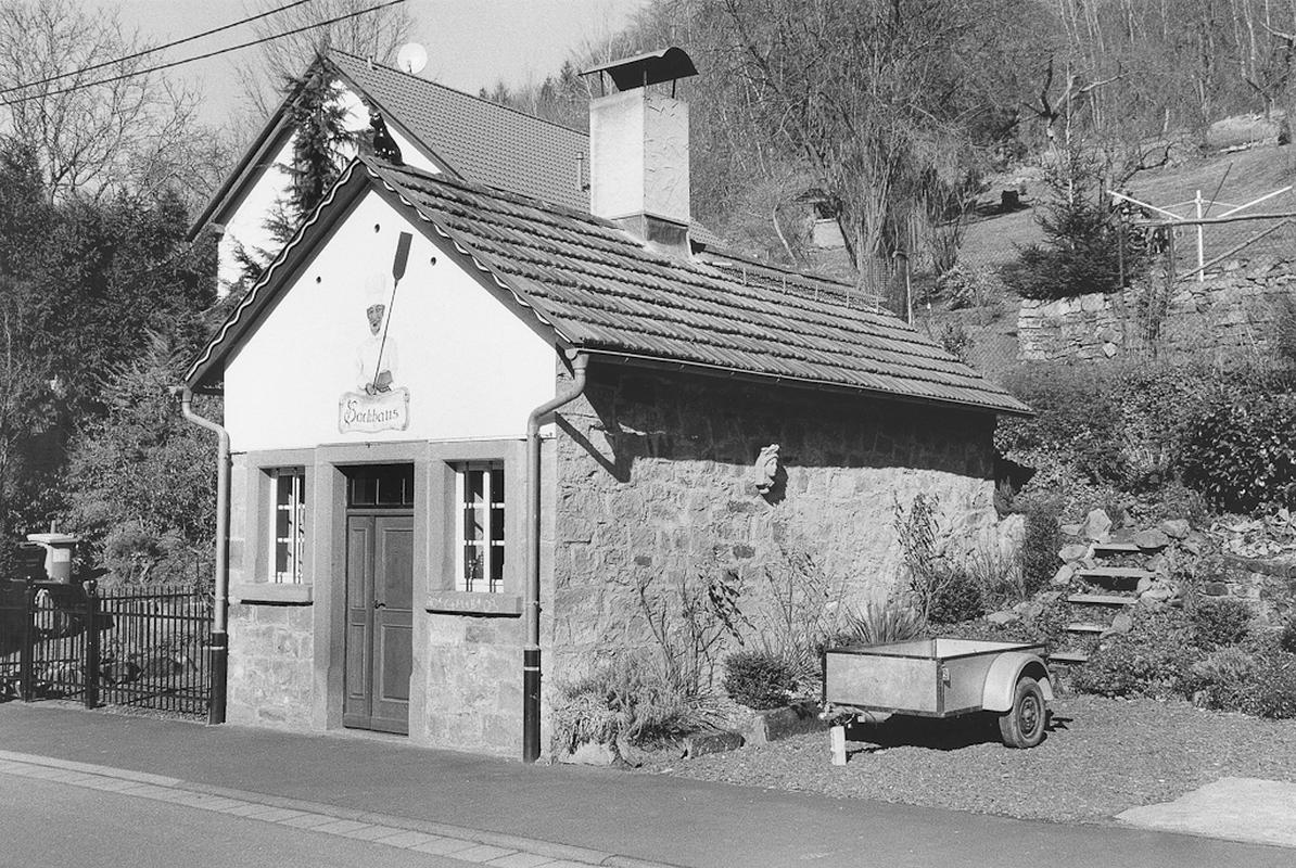 Giebelständiges Backhäuschen von 1840 in grob behauenen Sandsteinquadern mit Eckquaderung und Tür- und Fenstergewänden in Sandstein, Satteldach. Nutzung bis ca. 1947.