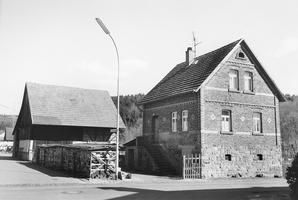 Kleine winkelförmige Hofanlage um 1900 mit giebelständigem Wohnhaus und quergestellter Stallscheune, seitlich Bauerngarten. Eingeschossiger Backsteinsteinbau auf hohem Kellergeschoss aus rustizierten Sandsteinquadern mit Eckquaderung, Satteldach. Gliederung der zweifarbigen Fassade horizontal mit Klinkerbändern in Höhe der Sohlbänke und Stockwerke, vertikal mit zweifarbigen Ecklisenen, am Giebel ein gestuftes Gesims, dekoriert mit farblich abgesetzten Klinkerrauten. Traufseitige Erschliessung über hohe, einhüftige Sandsteintreppe und original erhaltene Haustür mit Kassetten und viergeteiltem, stichbogigem Oberlicht. Originale Galgenfenster mit Oberlicht in Stichbogenform erhalten.