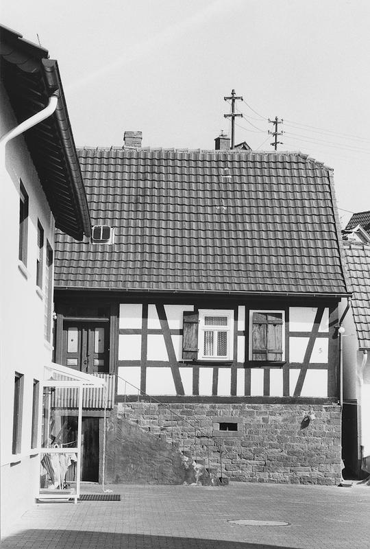 Eingeschossiges Wohnhaus aus dem Anfang des 19. Jahrhunderts in schlichtem Fachwerk auf Kellersockel in Sandsteinquadern, Krüppelwalmdach mit Aufschiebling. Erschliessung hofseitig über kleine Außentreppe und zweiflüglige Haustür mit Kassetten und dreigeteiltem Oberlicht in Holzfutter, die ebenso wie einige Galgenfenster mit Klappläden bauzeitlich sind.