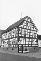 Langer, verputzter Stallriegel aus der zweiten Hälfte des 19. Jahrhunderts mit stichbogigen Sandsteingewänden, anschliessend Stallscheune mit Fachwerkobergeschoss, dazu querstehend Fachwerkscheune mit großem Einfahrtstor.