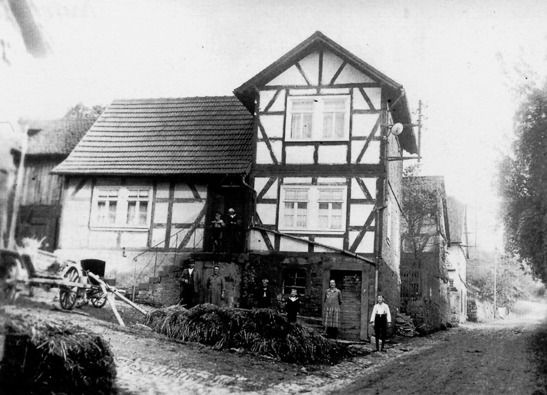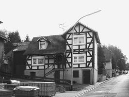 In Hanglage traufständiges Kleinbauernhof bestehend aus Wohnstallhaus und Scheune aus zweiten Hälfte des 19. Jahrhunderts. Auf hohem Stall- und Kellergeschoss aus Sandstein ein Fachwerkgeschoss mit zweigeschossigem, giebelständigem Querhaus. Erschliessung über eine hohe einhüftige Sandsteintreppe und zweiflügelige Haustür. Die ehemals jeweils gekuppelten zweiflügeligen Fenster mit Oberlicht leider durch breite moderne Fenster ersetzt. Das Haus verbindet die damals modernen Hausformen mit den traditionellen Kleinbauernhäusern des vorderen Spessarts. Die auf der alten Abbildung noch sichtbaren gekuppelten Fenster gaben dem Haus ein sehr harmonisches Aussehen.