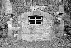 Am Parkende am Fuß des Berghanges ein in Mischmauerwerk aus Basalt und Sandstein errichteter Eingang zum Eiskeller, später zugesetzt. Im Segmentbogen die Initialen "A. G. z. Y. u. B." und die Jahreszahl 1886.