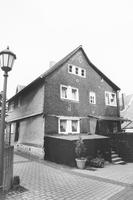 In Ecklage gegenüber der Kirche gelegenes zweigeschossiges Fachwerkhaus, im 19. Jahrhundert erweitert und zweifarbig mit Schieferplatten behängt. Das Haus dürfte ebenfalls in das späte 17. Jahrhundert datieren. Unter der Verschieferung ist weitgehend ungestörtes Fachwerk zu erwarten.