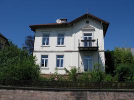 Zweigeschossiger Villenbau in spätklassizistischen Formen um 1900. Dreiachsiger, traufständiger Putzbau auf Sandsteinsockel, die Nordachse als giebelständiges Querhaus mit vorgesetzten Balkons ausgebildet. Gliederung der Flächen durch umlaufendes Sohlgesims und Verdachungen der zweiflügeligen Galgenfenster im Obergeschoss. Betonung des Risalites durch Putzlisenen im OberGeschoss, ein Okulusfenster im Giebel und steigende Blendarkatur am Ortgang.