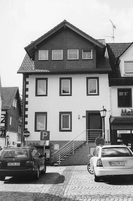 In Ecklage zweigeschossiger, dreiachsiger Putzbau mit Sandsteingewänden und Eckquaderung auf ehemaligem Stallkeller. Erschliessung über einhüftige Treppe in der nördlichen Außenachse. Das Haus datiert in das 19. Jahrhundert, Satteldach modern mit sehr großer Gaube in Form eines Zwerchhauses verändert.