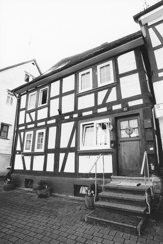 Zweigeschossiges, traufständiges Fachwerkwohnhaus aus der ersten Hälfte des 18. Jahrhunderts. Schlichtes Sichtfachwerk mit zwei Fensterachsen aus gekuppelten Fenstern. Satteldach mit Aufschiebling.