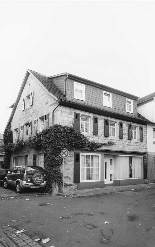 Dreiachsiges Sandsteinwohnhaus um 1860. Im Erdgeschoss wurde 1954 der straßenseitige große Stall in einen Futter- und einen Waschraum unterteilt, später zu einem Laden umgebaut. Im Obergeschoss und Giebel sind alte Klappläden erhalten.