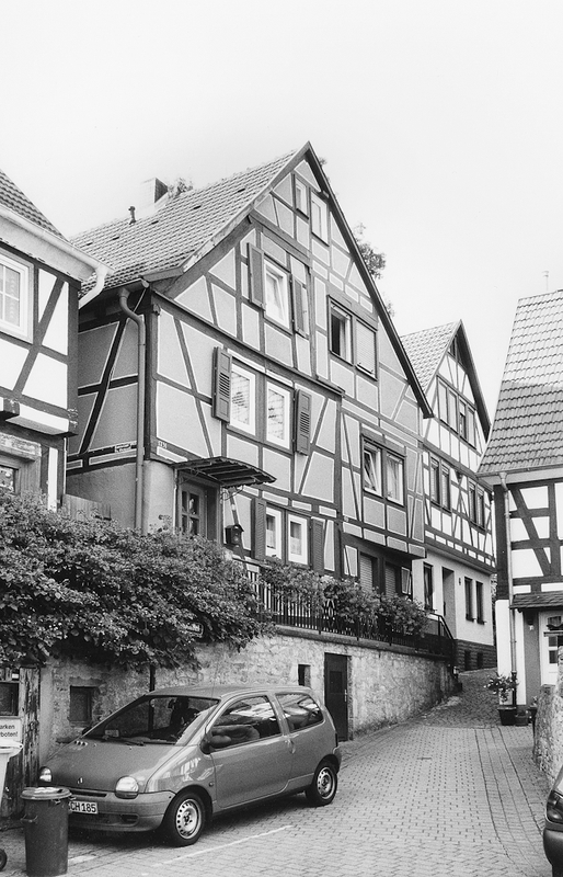 Giebelständiges Doppelwohnhaus auf einem terrassenartig vorgezogenem hohen Kellergeschoss aus Sandstein. Die südliche Haushälfte 1731 als schmales Wohnhaus mit leicht überkragendem Obergeschoss auf profilierter Rähm entstanden, 1743 das nördliche Gebäude in schlichtem Fachwerk angebaut. Baugeschichte aufgrund der Asymmetrie des Hauses durch Fehlen einer Mittelachse und unterschiedlichen Fenstergrößen deutlich ablesbar. Die Berichte der bayerischen Regierungsbeamten über die unvorstellbaren Wohnverhältnisse und die ineinander verschachtelten Wohnhäuser in Orb werden hier sichtbar dokumentiert.