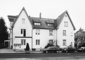 Zweigeschossiges, traufständiges Doppelhaus mit jeweils einem hochgestreckten giebelständigen Eckrisalit, um 1910 entstanden. Die südliche Gebäudehälfte Nr. 8 durch massive Anbauten auf der Hangseite und Veränderungen der Fassade gestört, der nördliche Teil Nr. 6 äußerlich weitgehend original erhalten. Auffällig die hohen steilen Giebel der Eckbauten, die dem ansonsten dem Heimatschutzstil verbunden Gebäude bereits ein modernes Gesicht geben. Wichtiges Gestaltungselement die kleinteiligen, zweiflügeligen - bzw. gekuppelten - Sprossenfenster mit Oberlichtern und die Schleppgauben mit drei gereihten, kleinen Fenstern. In der Fassade von Haus Nr. 6 in einer nördlichen Achse zwei kleine Fenster, im Erdgeschoss mit bauzeitlichem diagonalem Gitter, im Obergeschoss zugesetzt. Die Eingangsachse von Haus Nr. 6 an der Nordseite durch zwerchhausartige Gaube betont. Eindrucksvolles Gebäude am Übergang zur Moderne. Trotz der Veränderungen an Haus Nr.8 sind die Fassade mit ihrem steilen Giebel und die Gaubenreihe auf dem Dach für das gesamte Doppelhaus wichtig und daher schützenswert.