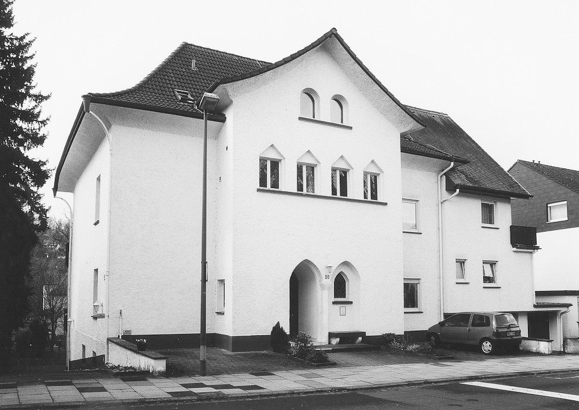 Zweigeschossige Villa nach einem Entwurf Rudolf Breuers um 1927 mit expressionistischen Anklängen. Traufständiger Putzbau mit vierachsigem Mittelrisalit und Zwerchhaus. In den beiden mittleren Achsen des Erdgeschosses Eingangszone in zwei gotisierenden spitzbogigen Nischen, südlich die Tür. In der weitgehend zugesetzten nördlichen Nische ein ebenfalls spitzbogiges Fenster. Im Obergeschoss eine Reihung von vier zweiflügeligen Fenstern mit dreieckigem, spitzen Abschluss, einem für die Entwürfe Breuers typischen Motiv in dieser Zeit. Wie bei Haus Ludwig-Schmank-Straße 4 werden die Fenster durch eine Sandsteinsohlbank optisch zusammengefasst. Im Zwerchhaus zwei Rundbogenfester, ebenfalls mit einer gemeinsamen Fensterbank. Elegant geschweifte Dächer mit breitem Ortgang, auf dem Hauptbau ein Walmdach, über dem Mittelrisalit ein Satteldach. Wie alle Bauten Breuers ein sehr eigenständiger, charaktervoller Entwurf.