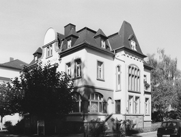 Um 1900 als "Jagdhaus“ errichtete historistische Villa. Reich durch Sandsteinelemente gegliederter, zweigeschossiger Putzbau mit bewegter Dachlandschaft aus Mansard-, Tonnen-, spitzen Zeltund Walmdächern. Sockel in rustiziertem Sandstein. Zur Kurparkstraße drei Fensterachsen aus je zwei zusammengerückten Fenstern im ersten Obergeschoss. In der Mittelachse eingeschossiger Altan mit aufgesetztem Balkon, darüber im Dachgeschoss Zwerchhaus mit geschwungenem, rundbogigem Giebel. Südliche Ecke des Erdgeschosses ehemals als Loggia mit Segmentbögen geöffnet, heute mit großen, gegliederten Fenstern geschlossen, äußerer Zugang vermauert. Traufseitig Erschließung in treppenturmartig vorspringendem Mittelrisalit mit großem, stilisiertem Maßwerkfenster im ersten Obergeschoss und hohem Walmdach über Rundbogenfries. Sehr repräsentatives Gesellschaftshaus der Frankfurter Investoren.