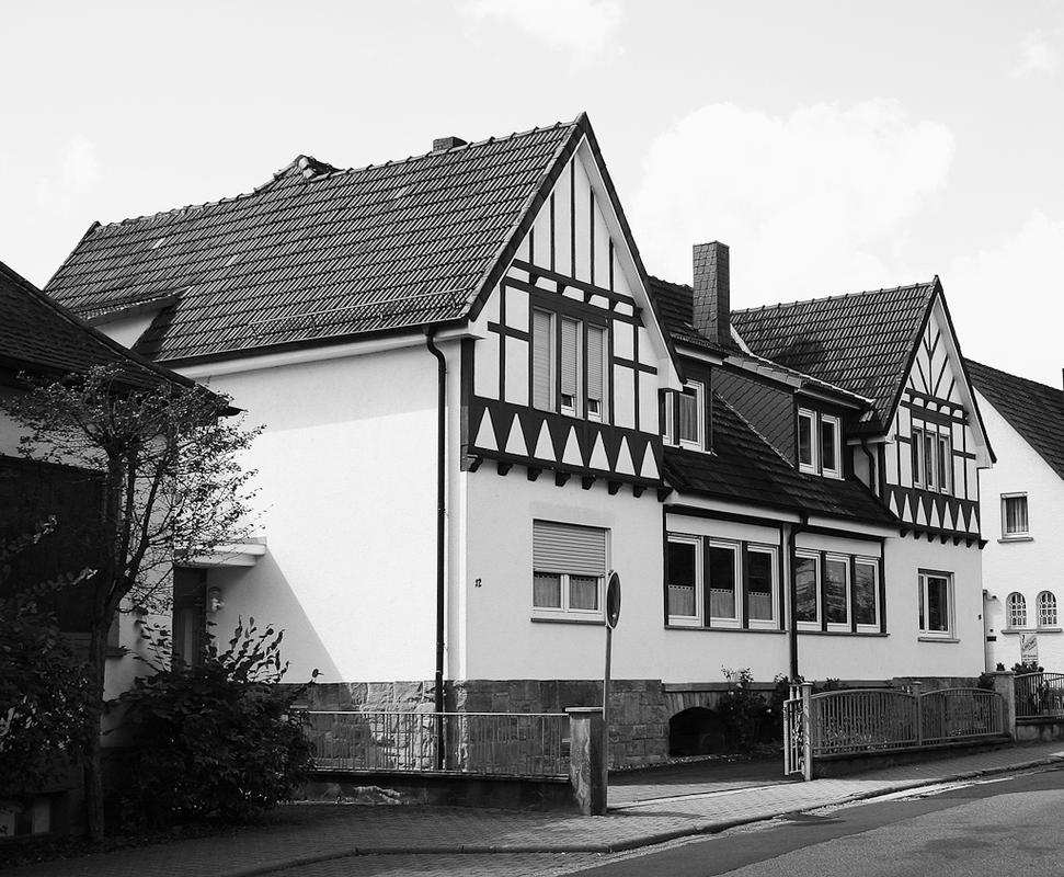 Doppelhaus in Formen des Heimatschutzstils. Das Doppelhaus wurde von der Giessener Firma Petri, Betreiberin des Braunkohlewerkes Wittgenborn, für ihre leitenden Angestellten gebaut. In den Zwanziger Jahren bewohnte es der Direktor Dr. Glöckner. Zwei traufständige, eingeschossige Massivbauten mit giebelständigen, durch ihre Fachwerkgiebel sehr markanten Kopfbauten. In dem traufständigen Hausteil ursprünglich offene Loggien auf profilierten Holzstützen, heute mit Fenstern zugesetzt. Die vermutlich gekuppelten Fenster im Erdgeschoss modern ersetzt. Hohe Satteldächer mit zwei doppelten Gauben im traufständigen Bereich. Das Doppelhaus prägt nachhaltig das Bild der Friedrich-Wilhelm-Straße.