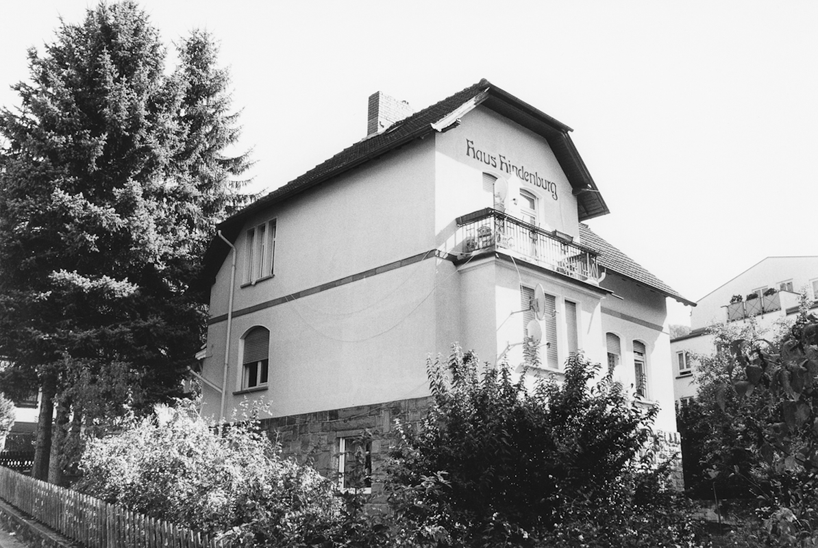 In Hanglage ein- bis zweigeschossige historistische Villa unter Krüppelwalmdach aus dem Anfang des 20. Jahrhunderts, in ihren Architekturformen ähnlich wie die schräg gegenüber stehende ehemalige Lateinschule. Der Putzbau wird gegliedert durch den Rustikasockel – auf der Gartenseite mit Bogenstellung, ein umlaufendes Sandsteingesims und die zu Dreiergruppen zusammengefassten Fenster. Im Erdgeschoss Freisitz an der Nord-Ost-Ecke, hangseitig Erker mit aufgesetztem Balkon. Das mit floralem Dekor verzierte Eisengitter noch Originalbestand. Darüber in Jugendstill ettern der Schriftzug "Haus Hindenburg“. Erschließung über eine zweiflüglige Eingangstür mit Oberlicht.