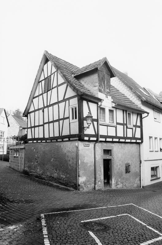 Kleines, zweigeschossiges Wohnhaus in Ecklage, ehemals Wohnstallhaus aus dem späten 18. Jahrhundert. Über massivem Erdgeschoss mit Türgewände und Oberlicht in Sandstein ein schlichtes Fachwerkobergeschoss mit zwei Fensterachsen, die westliche aus gekuppelten Fenstern. Im Satteldach Zwerchhaus mit Ladeluke. Diese kleinen Wohnstallhäuser dokumentieren anschaulich die Armut der Bevölkerung im 18. Jahrhundert und sind daher aus sozialgeschichtlichen Gründen unbedingt erhaltenswert.