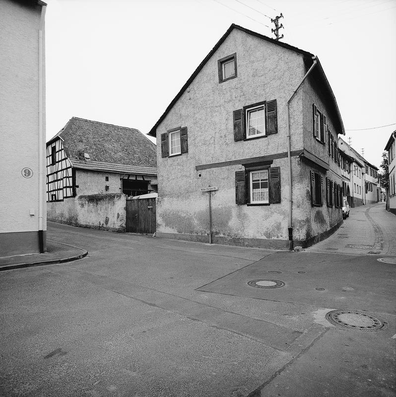 Kleinere Hofreite des 18. Jhs., bestehend aus Wohnhaus in Ecklage, parallel dazu gestellter Scheune an der Zollstraße und Hof mit Mauerabschluss. Das verputzte Fachwerkwohnhaus mit teilweise vorkragendem Obergeschoss zeigt nachträgliche Umbauten. Unverändert dagegen die Scheune auf etwa quadratischem Grundriss mit hofseitiger Einfahrt, giebelseitig freiliegendem Fachwerk und Krüppelwalmdach in traditioneller Ziegeldeckung mit Schieferumrandung. Trotz der Veränderungen an dem im Kern wohl älteren Wohnhaus stellt die Gebäudegruppe eine städtebaulich wichtige Markierung am Rand des alten Ortskerns dar.