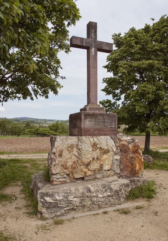 1808 gestiftet durch Graf Friedrich von Ingelheim, 1972 während der Flurbereinigung von seinem ursprünglich etwas tiefer gelegenen Standort auf den Gipfel des Rothenberges versetzt, 1981 nach Zerstörung des Kreuzes Erneuerung und Errichtung der umgebenden Mauer. Sockelinschrift: "Nach alten Sagen trieb einst der Wind / eine Mühle wo heut diese Reben sind. / Dies Weinfeld hat 1808 / Graf Friedrich von Ingelheim junggemacht. / Und vergrößert zum Heil kommender Geschlechter / 1917 Graf Philipp Rudolf zu Ingelheim-Echter".
