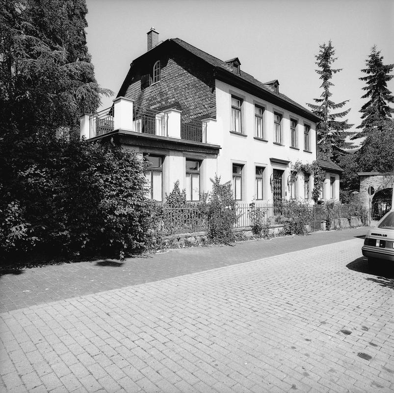 Das vermutlich um 1810 durch den Mainzer Kaufmann Hestermann erbaute, in älteren Berichten als „rebenumwachsen" beschriebene Sommerhaus diente dem Komponisten und Dichter Peter Cornelius (1824-1874) als Refugium; hier schrieb er 1856 seine Oper „Der Barbier von Bagdad". Am damaligen westlichen Ortsrand erhöht gelegenes Wohnhaus von schlicht biedermeierlicher Gliederung mit fünfachsig-symmetrischer Fassade, verputzter Schauseite, dreiseitig verschiefertem Obergeschoss und Krüppelwalmdach. Betonung des Mitteleingangs durch eine gerade Verdachung. An beiden Giebelseiten eingeschossige Anbauten, im Osten mit Satteldach, im Westen mit Dachterrasse. Vor dem Haus schmaler Vorgarten mit schmiedeeiserner Zauneinfriedung. Zwischen Wohnhaus und parallel gestelltem Wirtschaftsgebäude (jetzt Garage) die Hofeinfahrt mit eisernem Gittertor zwischen hohen, profilierten Sandsteintorpfosten.