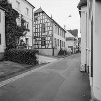 Traufständiges Fachwerkwohnhaus der Zeit um 1800 mit Krüppelwalmdach auf etwa quadratischem Grundriss. Rein konstruktives Fachwerk ohne Geschossvorsprünge, verputzt, an der Giebelseite freigelegt (mit modernen Zutaten). Fünfachsig-regelmäßige Fensterstellung mit Mitteleingang, davor zweiläufige Treppe aus Sandstein. Wohl nicht ursprünglich zugehörige, asymmetrisch geteilte Haustür des 18. Jhs. mit qualitätvoller Schnitzerei in Rokokoformen. Schlichtes, jedoch das Ensemble der Langgasse mitbestimmtendes Gebäude.