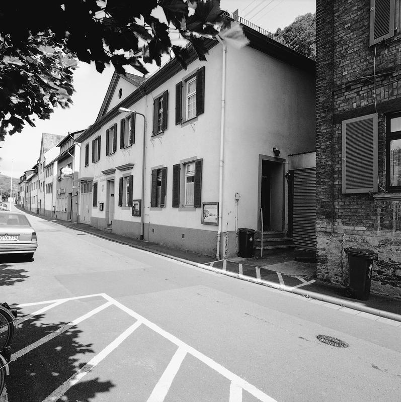 Die Grundsteinlegung für das ehemalige Rat- und Schulhaus fand 1823, die Einweihung 1824 statt. Vogels Rheinpanorama von 1833 zeigt das Haus als letztes Gebäude am westlichen Ortsrand. Traufständiger, zweigeschossiger Bau mit flachgeneigtem, verschiefertem Walmdach. Symmetrischer Baukörper mit leicht vorgezogenem, durch einen Dreiecksgiebel über der Traufe betonten Mittelrisalit. Über den beiden mittleren Öffnungen (eine davon vermauert) des Erdgeschosses gerade, profilierte Verdachungen. Wände verputzt, an der Schmalseite teilweise verschiefert. Die schlichte, klassizistische Erscheinung der einst symmetrischen Fassade wurde gestört durch ein modernes Garagentor der Feuerwehr und weitere Eingriffe. Letzter Rest der älteren Bebauung von Lorchhausen, von besonderem ortsgeschichtlichem Wert.