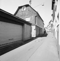 Wie Nr. 55 an der Südseite der Rheinstraße gelegenes Wohnhaus als weit nach Osten vorgeschobener Rest der alten Bebauung des ehemaligen Obersdorfer Viertels. Traufständiges Fachwerkhaus des 17./18. Jhs. mit Krüppelwalmdach. Über niedrigem massivem Erdgeschoss kragt das Obergeschoss deutlich vor. Straßenseite verputzt, östliche Giebelseite verschiefert; nach Westen jüngerer Anbau.