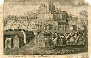 Das zweigeschossige, massive Gebäude mit Walmdach diente ehemals als Stockhaus (Gefängnis) und war Bestandteil der im Siebenjährigen Krieg (1756-63) zerstörten Schlossanlage. Während die baulichen Reste des Schlosses als Steinbruch (teilweise zum Bau der Wilhelmstraße) genutzt wurden, erschien die Abtragung an der nördlichen Zwingerterrasse zur Stadt hin zu gefährlich. Zudem wurden die Räumlichkeiten aufgrund fehlender Alternativen zur Unterbringung der Gefangenen benötigt. Die Einbindung der Außenwände und unterirdischer Räume in die sog. Hohe Mauer (erbaut 1523-36) sowie die Überlieferung von inhaftierten Personen um 1570 lassen eine Bauzeit Mitte des 16. Jahrhunderts vermuten. Die kleinen Fensteröffnungen bezeugen die Gefängnisnutzung und entsprechen im Inneren jeweils einer Zelle (pro Etage sechs Zellen, geteilt durch einen Längsflur).