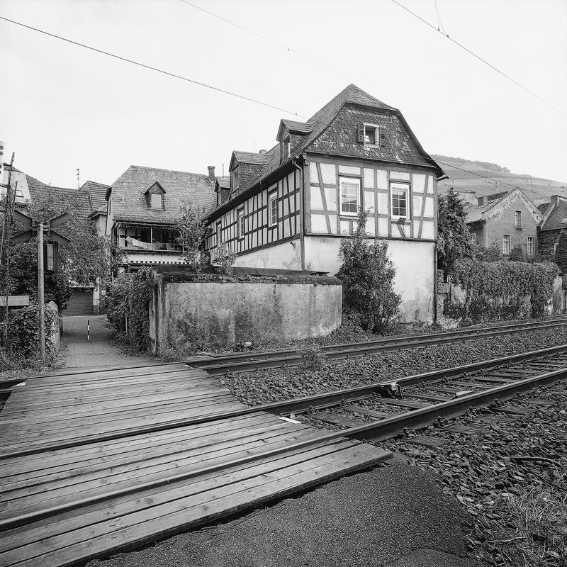 Ehemaliger Sponheim-Bolanden''scher Hof. 1916 Verkauf der Gutsgebäude aus Besitz des Weinhändlers Wilhelm Grün an Ernst Hufnagel. Lage im alten Ortskern unmittelbar hinter den Bahngleisen. Nach Inschrift 1648 erbaut, aus dieser Zeit sind jedoch nur geringe Reste (Keller, Türgewände) erhalten. Winkelförmiger Komplex mit langgestrecktem Seitenflügel. Erdgeschoss massiv, Obergeschoss schlichtes, konstruktives Fachwerk um 1800. Verschiefertes Krüppelwalmdach mit vereinzelten Gauben, zum Hof Ladegaube. Eingang zum Hof mit Gewände in Form eines oben leicht zugespitzten Korbbogens mit profilierter Kehle. Im Scheitel Wappenschild mit Inschrift. Dazu in der Literatur unterschiedliche Angaben: „Sp Ph B A A 55" („Sponheim Philipp Bolanden Altmünster Abtei 55" ?) oder 1648 PHBS AA CV ? (nach Foto von 1960). Kürzerer Flügel an der Lorcher Straße, im 19. Jh. neu errichtet, mit fünfachsig-symmetrischer, verputzter Front mit Mitteleingang. Heute teilweise verändert. Die Hoffläche wird durch eine Mauer mit überdachtem Tor umschlossen.