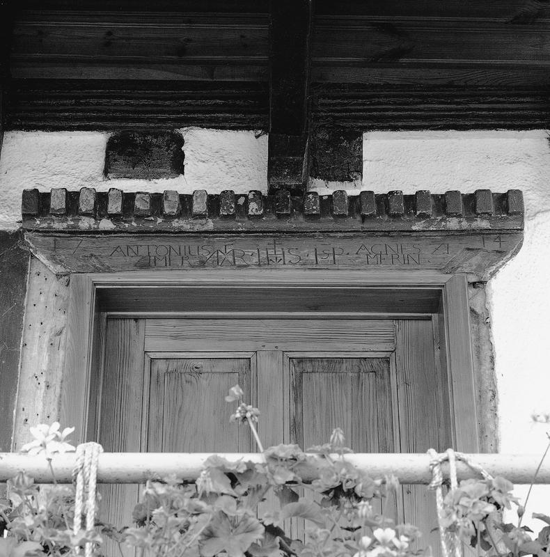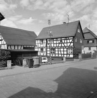 Hofreite in der Ortsmitte. Das giebelständige Wohnhaus erstreckt sich nach einer rückseitigen Erweiterung des 19. Jhs. über drei Zonen. (Die hier anschließende Scheune gehört ursprünglich zu Hofreite Rüdesheimer Str. 2.) Die Fachwerkscheune und ein weiteres Wirtschaftsgebäude begrenzen dahinter die relativ tiefe Hoffläche. Am Wohngebäude ist Fachwerk überdurchschnittlicher Qualität mit regelmäßiger Figuration und umlaufend profilierter Schwelle erkennbar, jedoch unter giebel- und hofseitiger Verkleidung größtenteils verdeckt. Über dem traufseitigen Eingang mit Freitreppe Rest des originalen Türgewändes mit kräftigem Klötzchenfries. Die Inschrift nennt die Erbauer und das Datum der Aufrichtung: „ANTONIUS ZIMER/AGNES ZIMERIN 1771". Die Hofreite ist Bestandteil einer ortsbildprägenden Baugruppe gegenüber der Kirche.