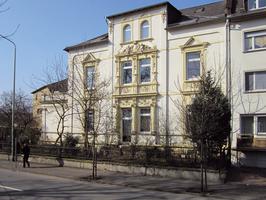Villenartiges Wohnhaus vom Ende des 19. Jhs., Eckbau einer geschlossenen Blockbebauung und Bestandteil der gründerzeitlichen Stadterweiterung nach Osten. Symmetrische Schauseite mit durch Blendrahmen abgesetztem, erhöhtem Mittelteil; die Mittelachsen betont durch reiche plastische Bauzier in Renaissance- und Barockformen. Im Erdgeschoss tragen eingestellte ionische Säulen die durch Pilasterumrahmung und Giebelschmuck hevorgehobene Fenstergruppe des Obergeschosses. Flacher Dachabschluss des Mitteltraktes vielleicht nicht ursprünglich. Westlich angefügt ein dem Obergeschoss als Terrasse dienender, eingeschossiger Anbau mit hochformatigen Fenstern zwischen Halbsäulen. Schmaler Vorgarten mit schmiedeeisernem Gitterzaun.