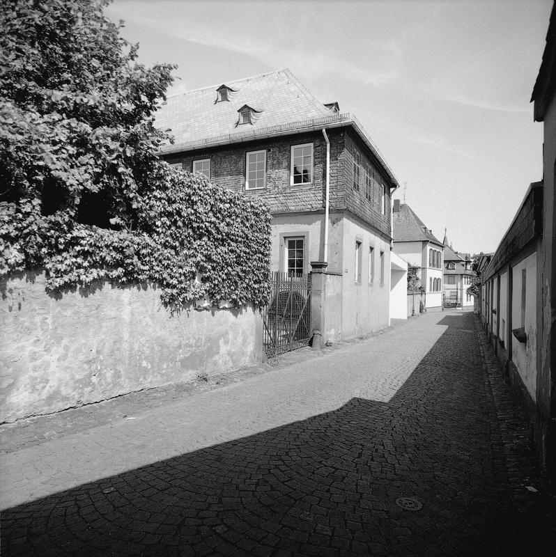steyn. Schlichtes, langgestrecktes Gebäude des 17. Jhs., dessen dreiachsige Schmalseite zur Oberstraße orientiert ist. Erdgeschoss massiv, darüber schieferverkleidetes Fachwerk-Obergeschoss und Walmdach mit kleinen Gauben. Hofseitiger Eingang mit Treppenaufgang. Hier ein profiliertes Sandsteintürgewände in Ohrenform mit Oberlicht, sonstige Fenstergewände rechteckig. Schmaler Hof von Wirtschaftsgebäuden umgeben; zur Straße Mauer mit schmiedeeisernem Gittertor und Sandsteinpfosten mit Aufsatz. Bestandteil einer Reihe im ehemaligen Bezirk der Niederburg angesiedelter Adelshöfe, damit von besonderer stadtbaugeschichtlicher Bedeutung.