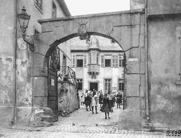 Östlich anschließend winkelförmige Anbauten um einen kleinen quadratischen Innenhof; hier u. a. datierter Türsturz mit Jahreszahl 1590.