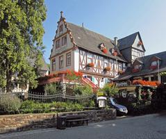 Rechteckiges Wohnhaus, an das sich rechtwinklig, den Hof nach Osten abriegelnd, ein etwas jüngerer Wirtschaftsflügel anschließt. Durch diesen teilweise verdeckt ein wohl ebenfalls jüngerer Anbau mit Giebelzwerchhaus. Nach Westen massive Giebelwand, bekrönt von geschweiftem, von Voluten gerahmten, durch Gesimse geteilten Renaissancegiebel. Hier rechteckige Fenster in Gewänden mit Falz und Kehle. Obergeschoss der Traufseite aus symmetrisch abgezimmertem, elegantem Sichtfachwerk mit geschwungenen Streben, hochgestellten Andreaskreuzen und Flechrauten als Brüstungszier. Hier ungewöhnlich ist die ursprüngliche Fassadenlösung des auf viereckigen Pfosten mit geschnitzten Streben vorkragenden Obergeschosses über dem auf die gleiche Ebene vortretenden Mittelteil des Erdgeschosses, der den hochgelegenen Eingang mit Freitreppe und einen rundbogigen Kellereingang enthält. Damit erhielt diese Seite eine durchgängige dreiteilige Gliederung. Über dem flachbogig geschlossenen Eingang in profiliertem Gewände das Baudatum 1609 (siehe Abb. S. 77).Das eigenständige, historisch und baukünstlerisch bedeutende, von Anfang an auf seine malerische Wirkung hin konzipierte Fachwerkhaus wurde schon früh durch Vermauerung der erdgeschossigen Lauben verändert, in jüngerer Zeit jedoch durch gastronomisch/touristische Nutzung und ensprechende Überformungen (Ersatzmaterialien, Bemalung) stark beeinträchtigt.