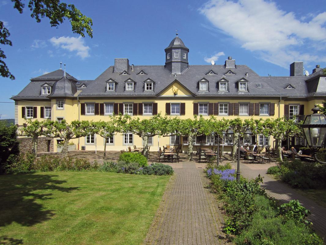 Hauptgebäude, ein schlichter zweigeschossiger Massivbau auf rechteckigem Grundriss, neun Achsen lang, die Mittelachse durch einen Dreiecksgiebel betont. Auf dem Walmdach verschieferter achtseitiger Dachreiter mit Haube und Gauben. Fenster schlicht rechteckig. Damit wurde die Grundform des sieben Achsen langen Ursprungsbaues weitgehend beibehalten. An der Talseite nach Norden vorgelegte Terrasse. An den Schmalseiten zweigeschossige Neubauten mit Mansarddächern und ein dreiseitig vorspringendem Treppenturm mit Haube. Alle Dächer mit Schieferdeckung. Störungen durch moderne Zutaten. Das Innere wurde nach Brand vollständig erneuert. Wirtsgarten mit Bäumen, im Hof ein moderner Brunnen.