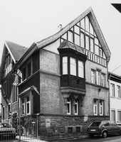 Großer, 2 1/2-geschossiger asymmetrischer Bau mit einem Zwerchhaus über dem Treppenhaus an der Längsseite und einer aufwendig gestalteten Schaufassade zur Straße. Schöner, reich verzierter Erker mit gedrehten Säulen und geschnitzter Ornamentik in den Brüstungsfeldern. Über dem Fenstersturz Inschrift in Jugendstillettern: "Dr. med. Stern erbaute dieses Haus im Jahre 1903. Architekt E. Völker." Das Haus ist Kulturdenkmal aus baukünstlerischen Gründen.