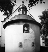 1232 wurde an der Stelle des vorkarolingischen Turmes die kleine einräumige Marienkapelle mit Westapsis - die wohl älteste Wallfahrtskapelle - geweiht. Sie bestand bis zur Errichtung des Querwesthauses 1697. In der 2. Hälfte des 14. Jhs. entstand der lange gotische Chor. Das alte Mittelschiff mit zugemauerten Arkaden wurde wieder instandgesetzt. Auf den Resten des romanischen Westturmes wurde ein neuer errichtet, an der Nordseite des Chors die Sakristei und an der Nordseite des Turmes eine Kapelle angebaut.