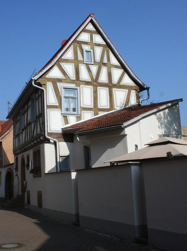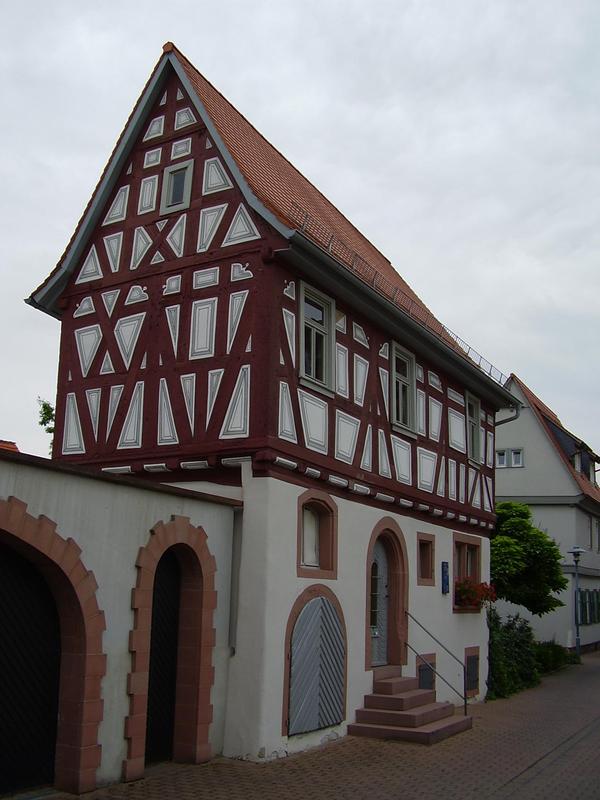 Das traufständige zweigeschossige, schmale Haus mit spitzem Dach gehört zu den ältesten Häusern Dieburgs. Massives Sockelgeschoss mit Rundbogentür und paarigen Rechteckfenstern sowie eine rundbogig geschlossene Kellertür, im Scheitel datiert 1576. Das ehemals verputzte OG zeigt regelmäßiges dekoratives Fachwerk mit Mann-Figuren. Am Nordgiebel ein konstruktives Fachwerk mit durchlaufendem Firstständer. Das Haus ist aus baugeschichtlichen und baukünstlerischen Gründen Kulturdenkmal.