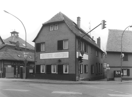 Barockes. giebelständiges Fachwerkhaus von 1726/27 unter Verputz. Nebengebäude an einem Hof.