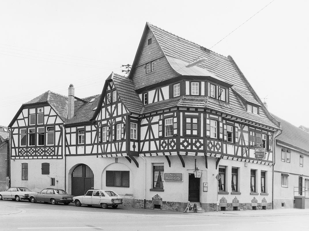 In städtebaulich wichtiger Lage, schon von weitem als Blickpunkt wirkt das stark plastisch durchgebildete Eckhaus mit massivem UG und auf Knaggen weit übersetztem OG mit reicher Fachwerkornamentik, verschiedenen Erkern im Dachraum und Jugendstilanklängen. Kulturdenkmal wegen seiner städtebaulichen Bedeutung und seiner Bedeutung als Versuch einer angepaßten ländlichen Wirtshaus- und Hofarchitektur aus der Zeit um 1910.