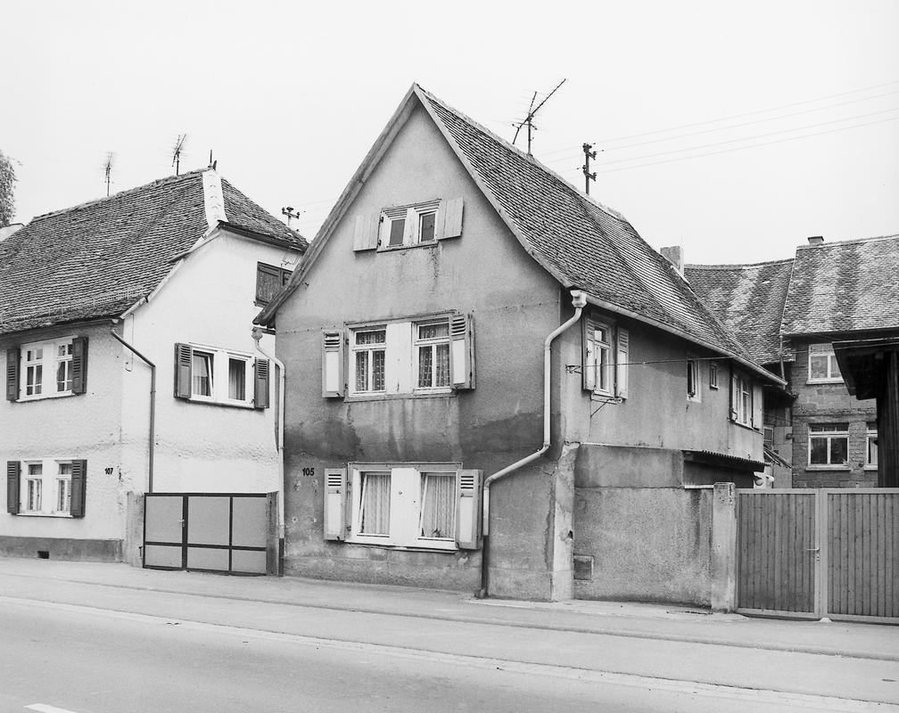 Kleine giebelständige Hofreite, das Wohnhaus mit starkem Geschoßüberstand und ungestörter Fenstersituation als Fachwerkbau des 17./18. Jhs. in reicher Ausbildung. Zusammen mit dem Nachbarhaus Nr. 107 bildet der Bau einen städtebaulich wichtigen Akzent innerhalb der Straße.