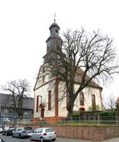 Einfacher, für die Wetterau typischer Saalbau mit dreiseitigem Schluss. Im Westen Haubendachreiter über dem Giebel. In der Ostwand eine Säule mit einem Wappen von 1616 integriert. Ausstattung aus der Bauzeit. Die Dreymann-Orgel wurde ursprünglich 1834 für die katholische Kirche in Eltville erbaut. 1870 wurde sie repariert und in Hainchen eingebaut.