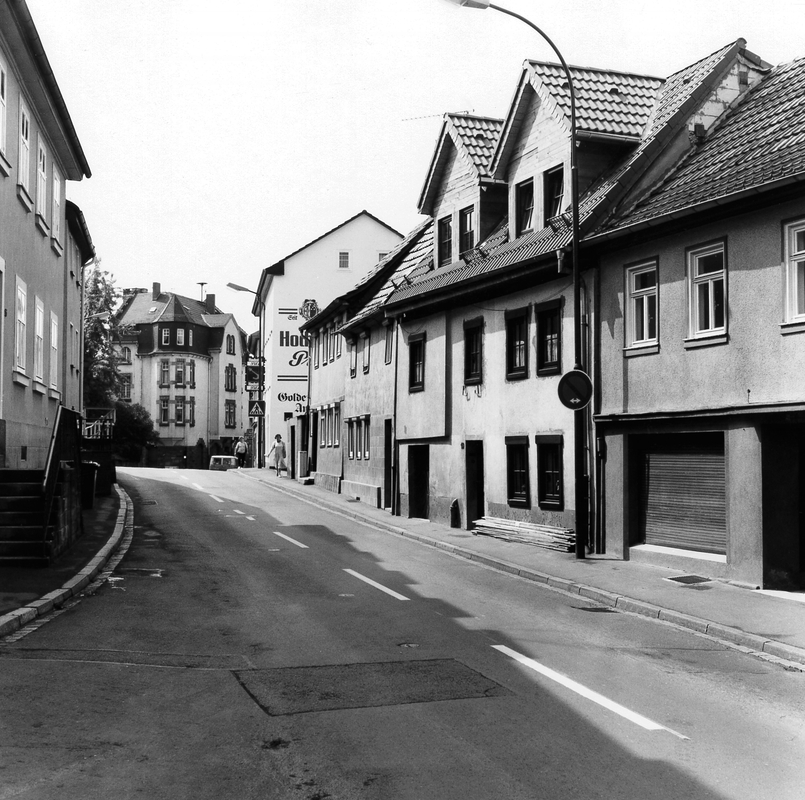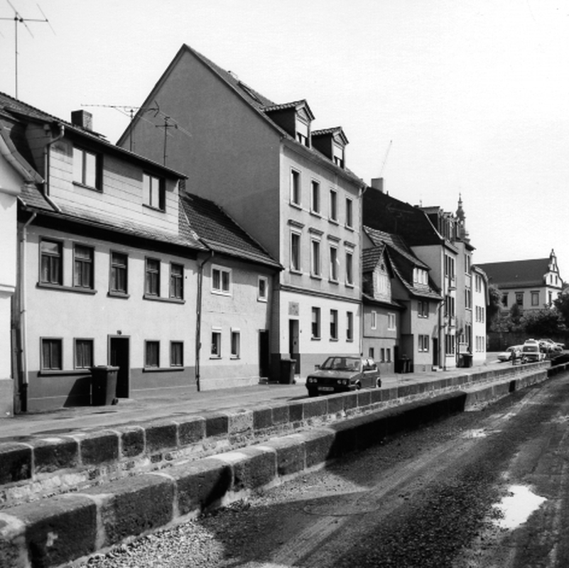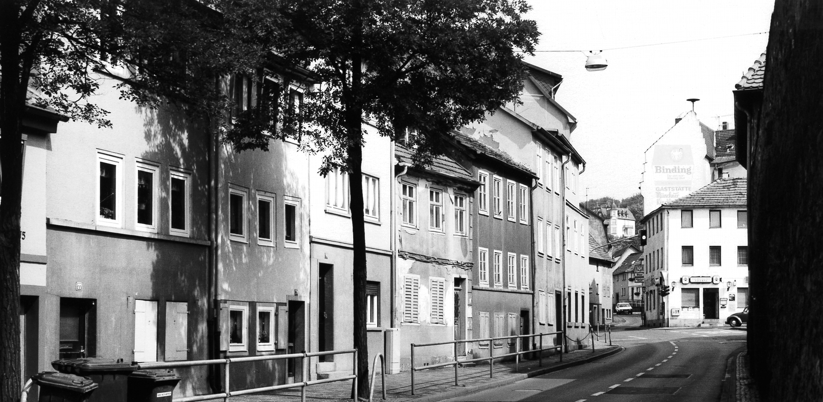 Charakteristisch für die Gesamtanlage ist die kleinteilige, geschlossene Straßenbebauung mit zwei- und dreigeschossigen, in der Regel traufständigen Wohnhäusern, denen jeweils nach hinten unterschiedlich große Gartenparzellen zugeordnet sind. Die Langebrückenstraße bildet noch heute das Entree zur Stadt, in Höhe des Hauses Nr.29 hat noch im 18.Jh. ein Tor gestanden. Zahlreiche der hier befindlichen Häuser stammen - zumindest im Kern - noch aus dem 17./18.Jh., ihr Fachwerk liegt unter Verputz. Auffallend ist das langgestreckte, aus drei älteren Bauten zusammengesetzte Haus Nr.27, dessen kräftiger Geschoßvorsprung Anlaß gibt, eine noch frühere Entstehungszeit zu vermuten. Bemerkenswert ist auch das barocke Portalgewände am Haus Nr.9, das mit seinen reichen Profilen wahrscheinlich in einen anderen baulichen Kontext gehört. Bestimmend für das Straßenbild sind auch die Bauten des 19. und frühen 20. Jhs., die sich hauptsächlich im Einmündungsbereich der Kronhofstraße gruppieren und die die niedrigen Barockhäuser überragen. An einigen Gebäuden befinden sich Heiligenfiguren, hervorzuheben ist eine holzgeschnitzte Barockmadonna am Haus Nr.25 sowie eine kleine Sandstein-Madonna am Haus Nr.14. Das ehemalige Gartengelände hinter den Häusern ist zum großen Teil mit jüngeren, meist für gewerbliche Zwecke genutzte Bauten verstellt.